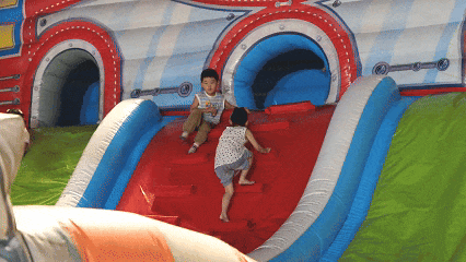 充气城堡里,小朋友化身“小探险家”,在软软的“山丘”上蹦跳、攀爬;彩色滑道像条绚丽丝带,小朋友坐在气垫上,“嗖”地一下冲下去,冲到底端还意犹未尽,想再来一次。“这里面的游乐设施非常丰富,也很好玩,我刚才转了一圈,都玩不过来了。”小朋友贺芮彤说。