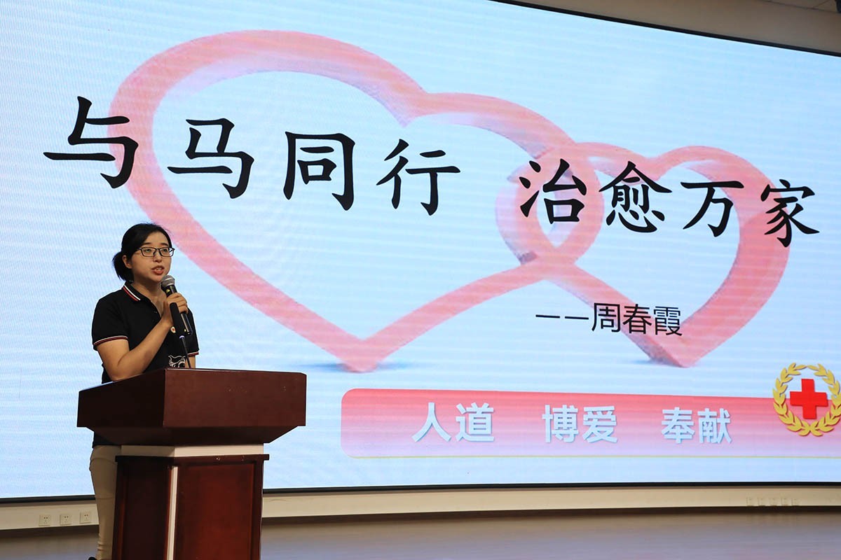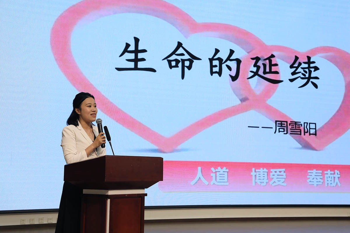 在宣讲环节,稀有血型拥有者、无偿献血超5000毫升的“熊猫侠”暴晓燕,顺义区第一位女性造血干细胞捐献者、90后医务工作者周雪阳,从受到感召登记遗体捐献到投身宣传遗体器官捐献的志愿者杨阳,为罕见病儿童提供免费“马术康复”疗愈的公益人周春霞,无偿献血志愿者、基层工作者张颖,关心爱护盲人、登记捐献眼角膜的村务工作者张琳等6名“人道+”好风气宣传志愿服务队队员,分别讲述了自己用行动传递生命之火、点亮生命之光的故事,激励更多人积极投身人道公益事业。