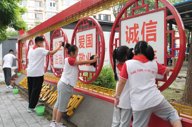 “红领巾楼道长”志愿服务品牌还得到了顺义三中的大力支持。顺义三中团委书记刘慧颖表示:“暑期是开展实践教育的黄金期,我们希望通过校家社三方联动,让孩子们在服务社区的过程中践行志愿服务精神,增强社会责任感。”