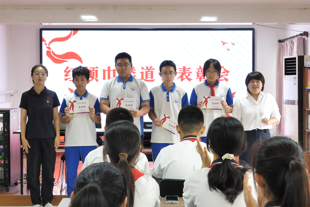 走进裕龙花园社区新时代文明实践站,“红领巾楼道长”表彰会正在举行。现场,社区工作人员为在社区志愿服务中表现突出的孩子们颁发表扬信,并号召孩子们投身社区各项志愿服务,在实践中收获成长、传递温暖。