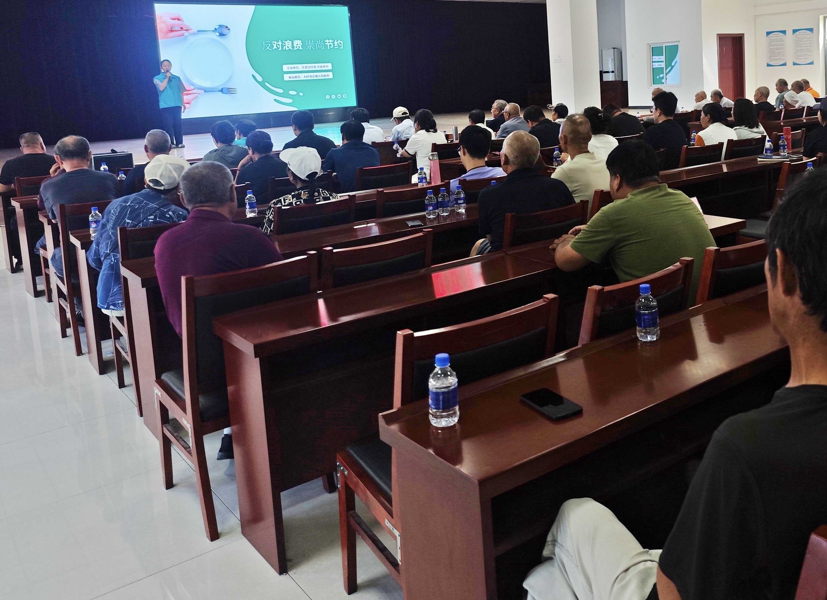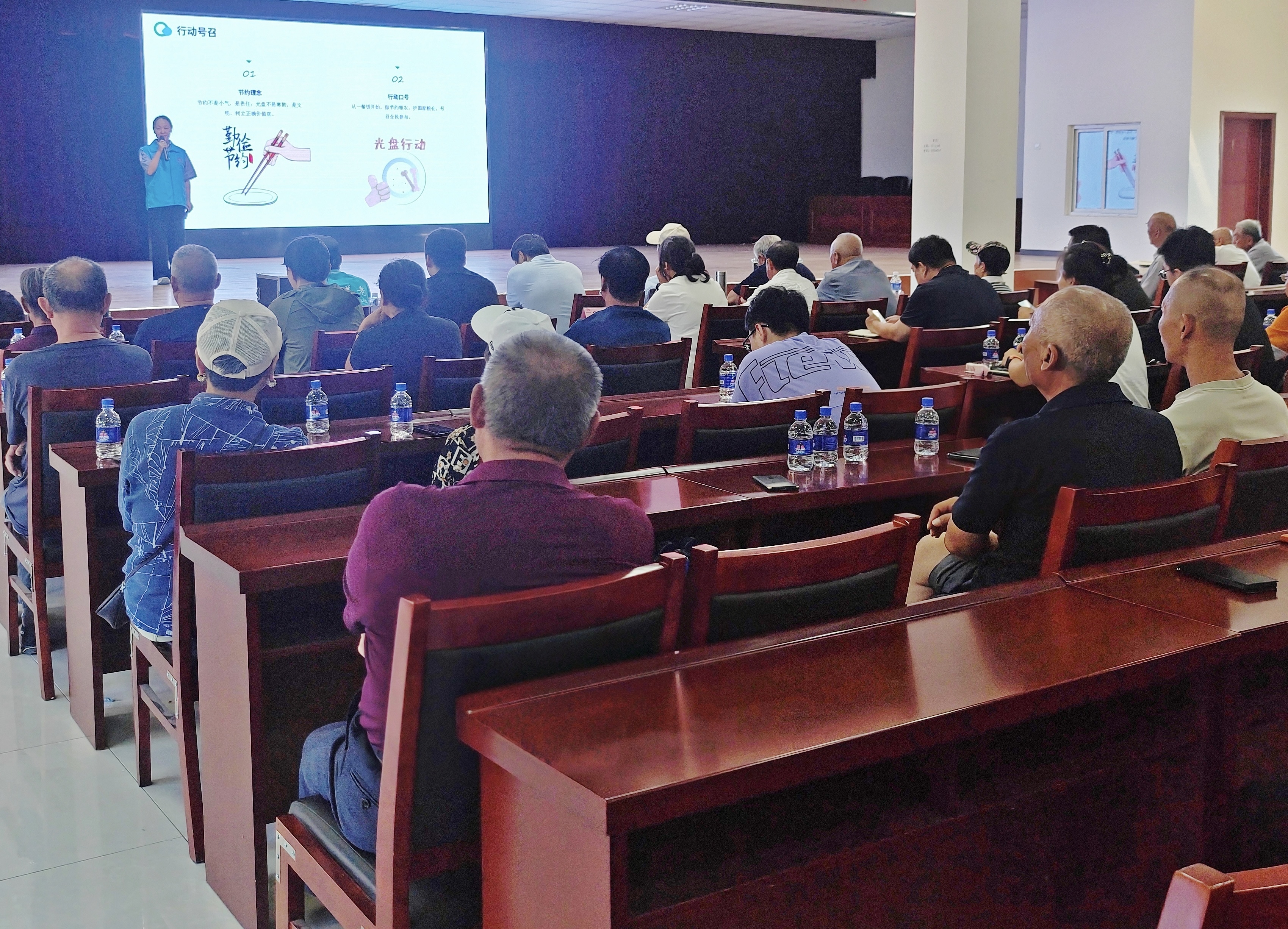 活动中,主讲人通过“粮食浪费的严峻现状、为何要节约粮食、全链条节粮减损行动、村民行动指南、我们的承诺”五个方面讲解资源节约知识。